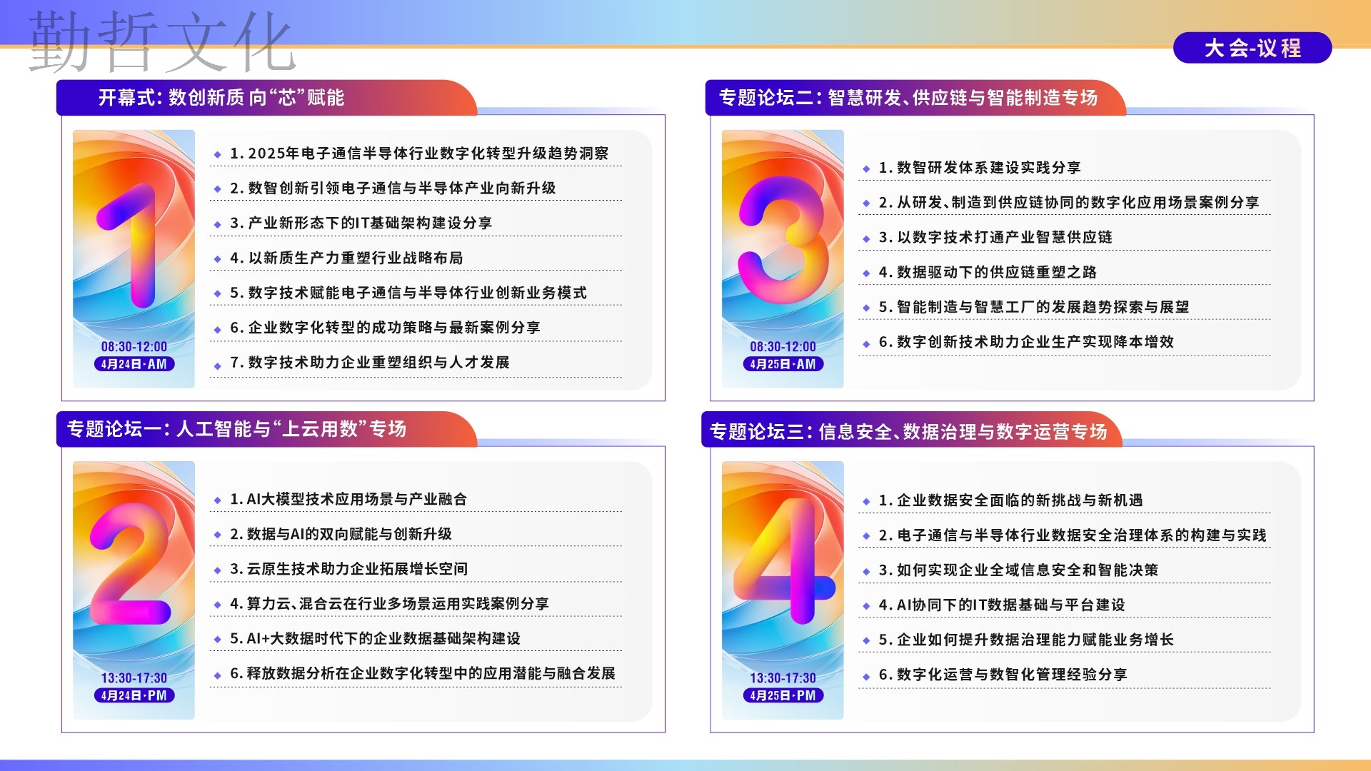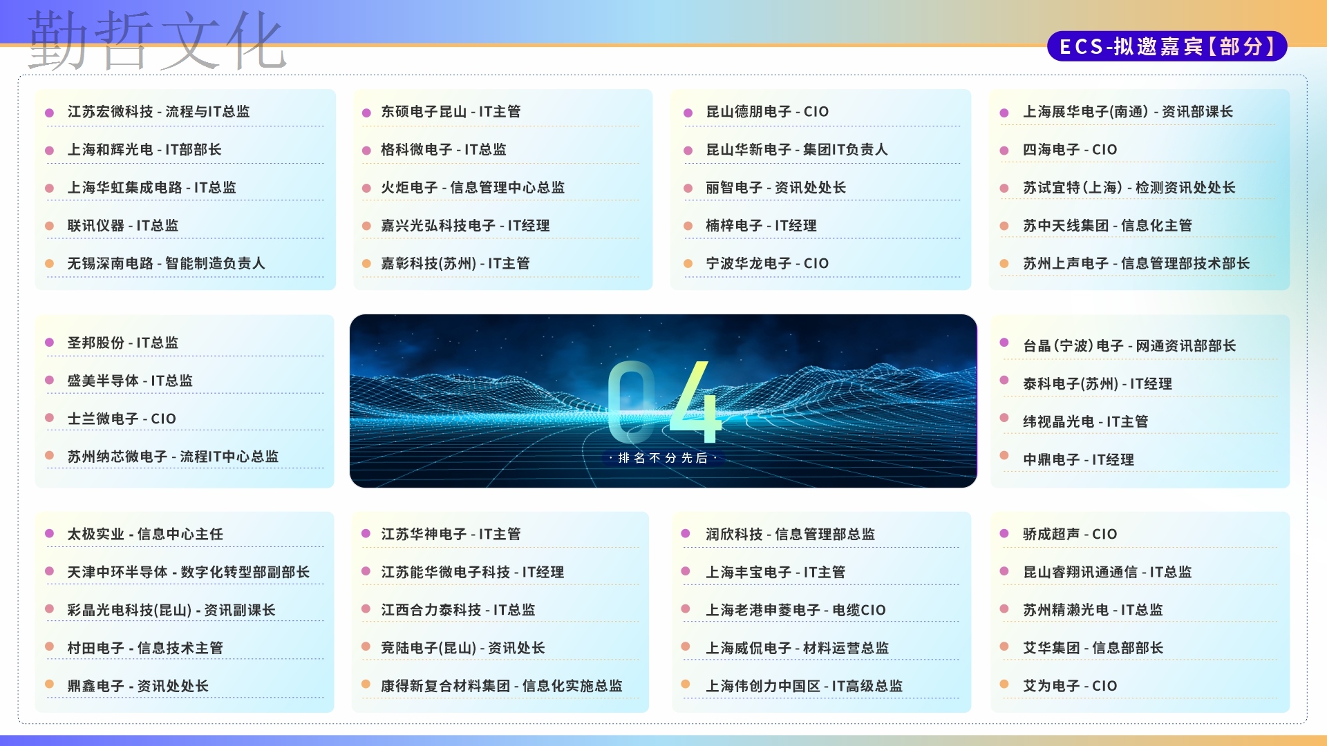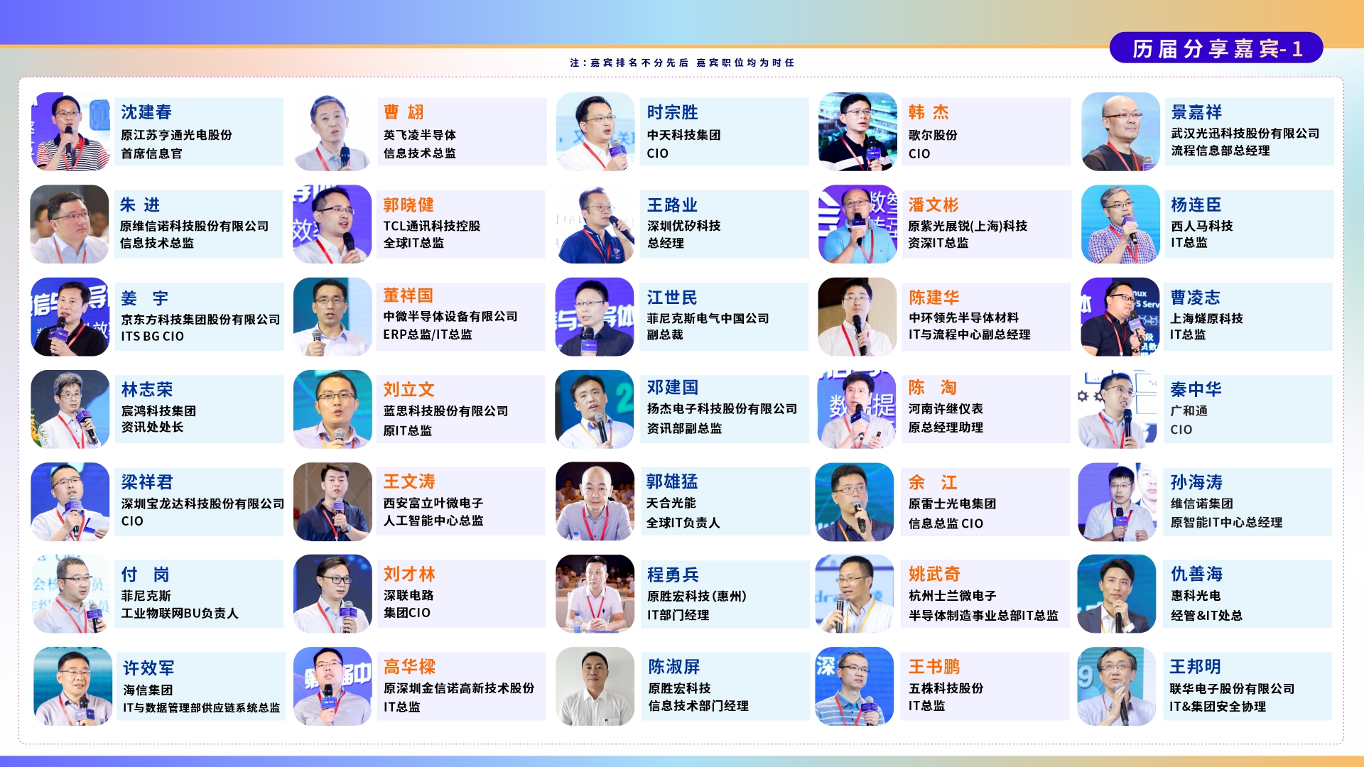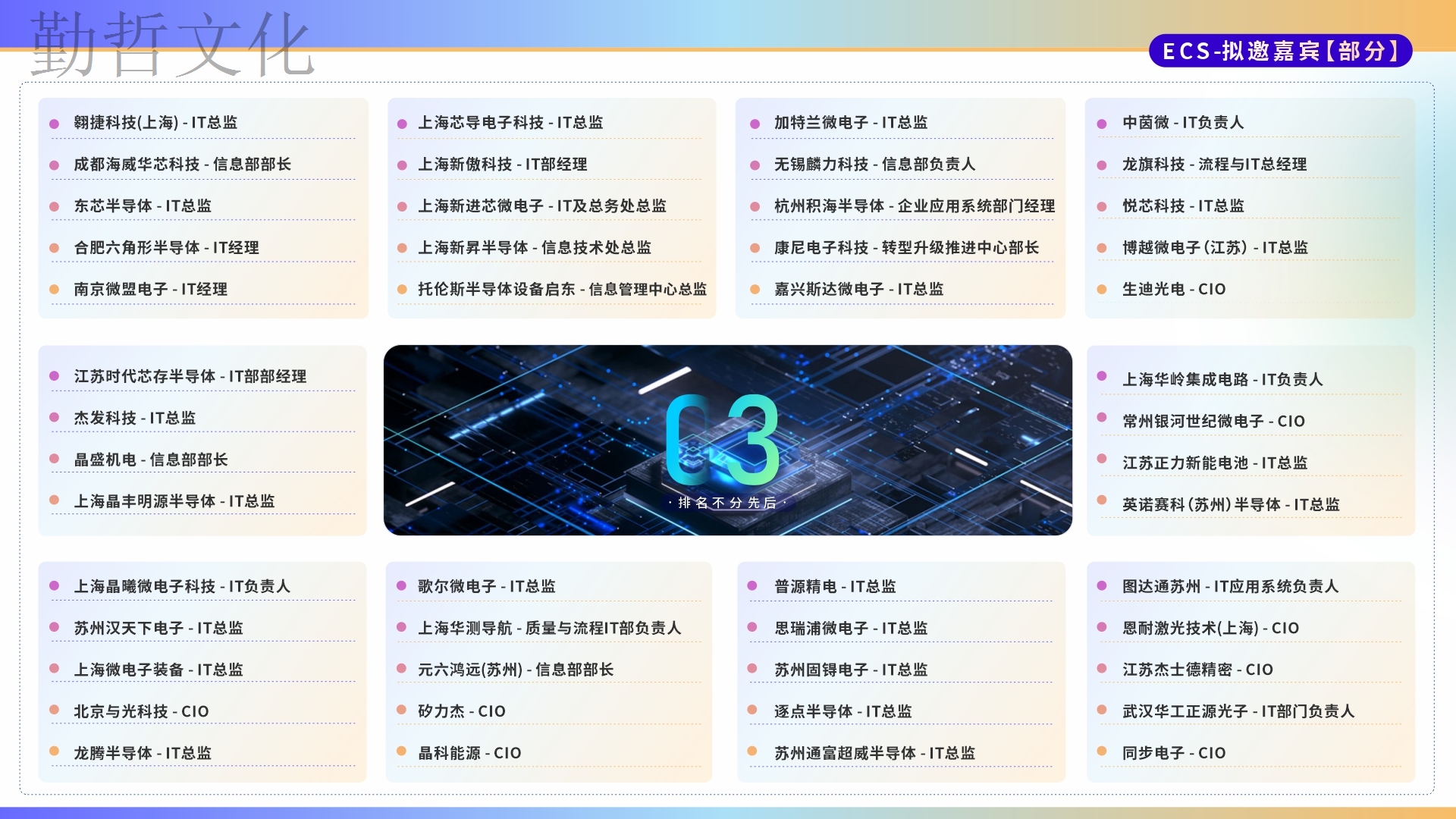 智慧交鋒、知識碰撞。本次大會匯集200+電子通信與半導體行業知名企業高管、CIO、IT負責人以及行業知名信息化服務商,兩大論壇+16場行業大咖演講+1場CIO硬核座談會……現場共享思維盛宴,見證數字賦能的魅力!